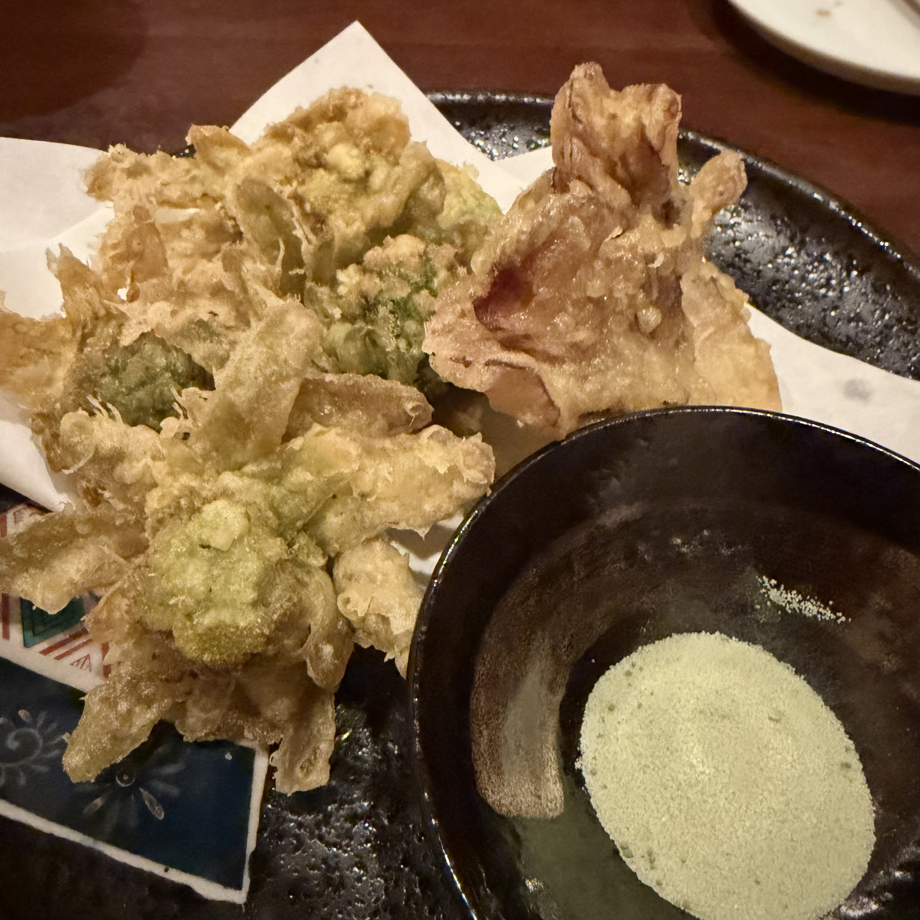 抹茶塩🍵でいただくと、ふきのとうの味が口のなかに広がります。